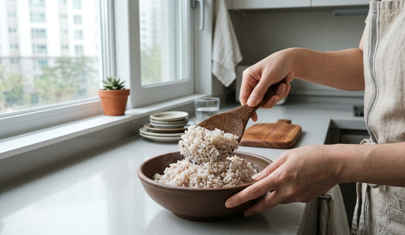 | 밥 상태 | 따뜻한 밥 그대로 | 찬밥 + 미리 풀기 |