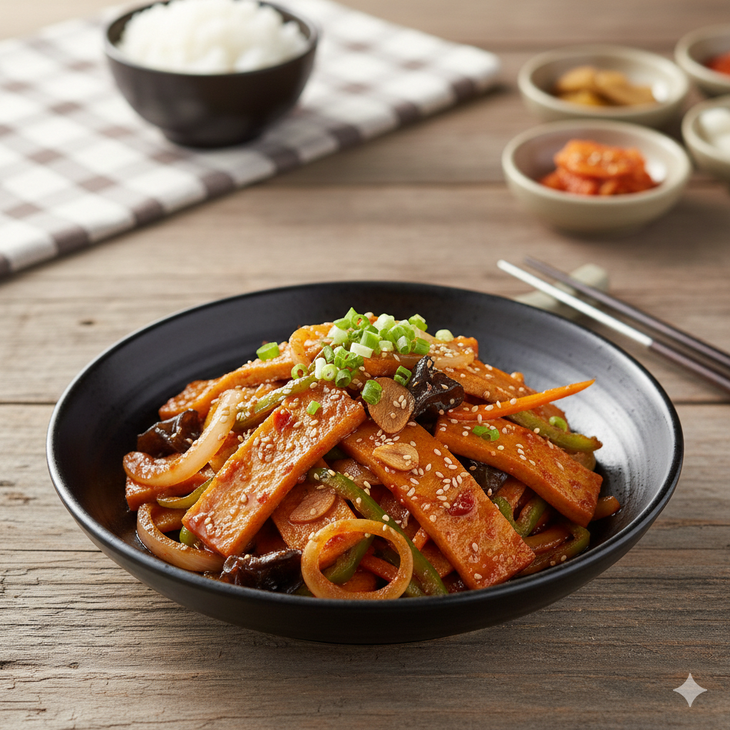 - 고추장 0.5큰술 추가 → 매콤 어묵볶음